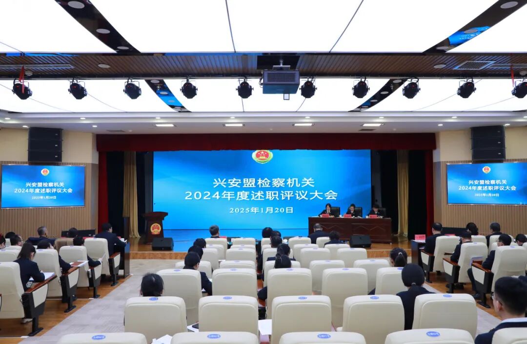 1月20日,兴安盟检察分院召开全盟检察机关2024年度述职评议会议。兴安盟检察分院党组书记、检察长张红霞,分院在家党组成员、检委会专职委员、各旗县市院检察长、分院各内设机构负责人及全体检察人员参加会议。会议由分院党组成员、政治部主任鞠守军主持。 会上,全盟六个旗县市院检察长及分院各内设机构负责人通过PPT演示和现场汇报,全方位展示过去一年工作成效。他们围绕职责梳理工作、分享经验,剖析自身不足。面对新形势与新任务,结合当下法治环境和司法需求,着眼2025年检察工作建言献策,凝聚共识、汇聚众智,明确以党建引领,提升办案质效等工作思路,细化任务,为新一年的检察工作描绘出清晰的奋进蓝图。 兴安盟检察分院党组成员、副检察长朱丽璇和兴安盟检察分院党组成员、盟纪委监委派驻分院纪检监察组组长乌丽汗分别对各旗县市院检察长、分院各部门负责人的述职情况进行了细致点评,并就新一年的工作提出了具体要求。 全体与会人员对各旗县市检察院和分院各部门工作情况进行了民主测评。 瑞雪辞旧程,蓝图展新途。2025年,兴安盟检察机关将坚定不移地以习近平新时代中国特色社会主义思想为灯塔,把党的二十大、党的二十届三中全会精神作为行动指南,秉持“让公平正义在每个案件中彰显”的核心理念,始终锚定“追求卓越、敢为人先、争创标杆”的目标,以更专业的素养、更坚定的决心,扛稳新时代赋予的检察重任,为推动兴安盟法治建设大步迈进,为绘就中国式现代化兴安盟壮美画卷注入磅礴检察力量 。