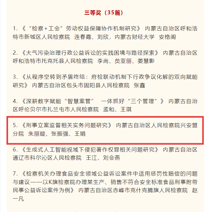 近日,内蒙古自治区第三届检察理论研讨会(敖包检会)在赤峰市召开。此次会议以“全面深化改革 助推高质效履职”为主题,旨在共探检察理论创新路径,共商检察改革新蓝图,共筑检察学自主知识体系新格局。本次征文活动中,兴安盟检察机关表现突出,报送的三篇论文分别荣获二等奖、三等奖和优秀奖。 近年来,兴安盟检察机关立足边疆地区检察工作实际,将检察理论研究作为提升法律监督质效的重要引擎,紧扣“高质效办好每一个案件”的工作主线,坚持问题导向与理论创新相结合,深入开展理论研究和实践探索,形成了一批具有地域特色、实践价值的理论成果,为提升办案质效提供了有益参考。 下一步,兴安盟检察机关将以此为新起点,持续深化理论研究与实践创新的良性互动。在保持现有研究特色的基础上,继续围绕司法实务中的疑难问题开展针对性研究,通过完善成果转化机制等务实举措,促进理论研究与司法实践深度融合。同时着力培养兼具实务经验和研究能力的专业化人才队伍,切实发挥理论研究对提升法律监督质效的支撑作用,为提升法律监督质效、推动兴安检察工作高质量发展提供更加有力的支持。 |