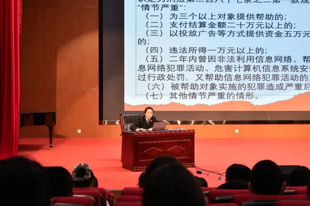 聚焦未成年人权益保护,依法从严惩治侵害未成年人犯罪。讲座紧扣“1+6”专项行动中关于预防惩治侵害未成年人违法犯罪的工作要求,检察人员结合办案实践,详细剖析了性侵害、暴力伤害等案件的常见形式、作案特点及法律后果,引导学生提高自我保护意识,掌握识别危险、寻求帮助的正确方法。同时强调司法机关对侵害未成年人犯罪“零容忍”的态度,织密未成年人司法保护网。