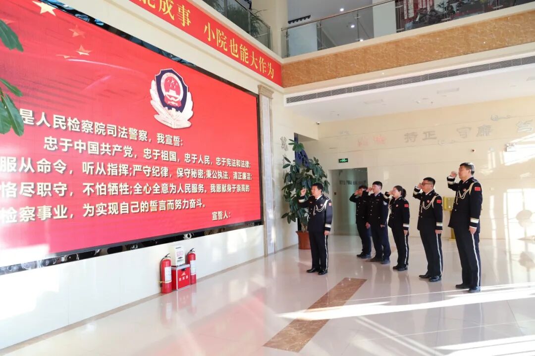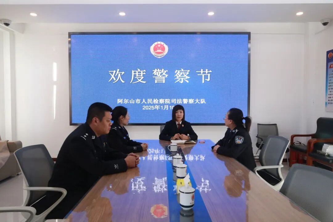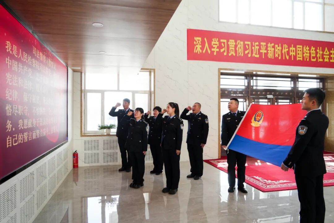 以及用于模板制作。 兴安盟各旗县市检察院法警大队举行重温入警誓词活动,面对警旗庄严宣誓:“我是人民检察院司法警察,我宣誓:忠于中国共产党,忠于祖国,忠于人民,忠于宪法和法律......”誓言铮铮,回荡在每一位司法警察的心中,这不仅是每一位司法警察对人民的承诺,更是他们对法律的尊崇,对职业的坚守。随后,各旗县市检察院法警大队召开座谈会。司法警察们围坐在一起,畅所欲言,分享从警生涯中的点滴故事、成长感悟以及工作中的困难与收获,大家互相交流、相互学习,在思想的碰撞中增进了团队的默契与凝聚力。 展望未来,兴安盟检察机关将以此次警察节活动为契机,以更加饱满的热情、坚定的信念和严谨的作风,全身心投入日常检察工作中去,为兴安盟法治建设和社会稳定添砖加瓦,为检察工作高质量发展保驾护航。