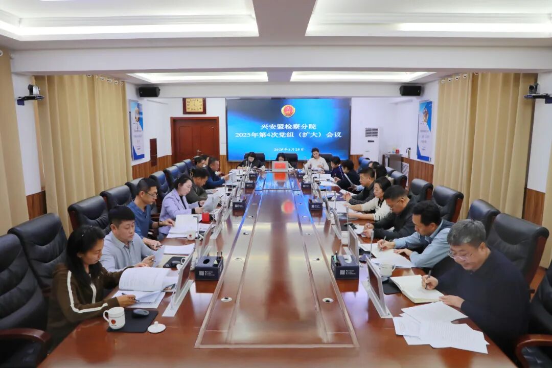 1月25日,兴安盟检察分院组织召开党组(扩大)会议,传达学习中央、自治区党委政法工作会议精神,全国、全区检察长会议精神,全国检察机关党风廉政建设工作会议精神等内容,研究贯彻落实举措。会议由兴安盟检察分院党组书记、检察长张红霞主持,分院在家党组成员、检委会专职委员、各内设机构负责人参会。