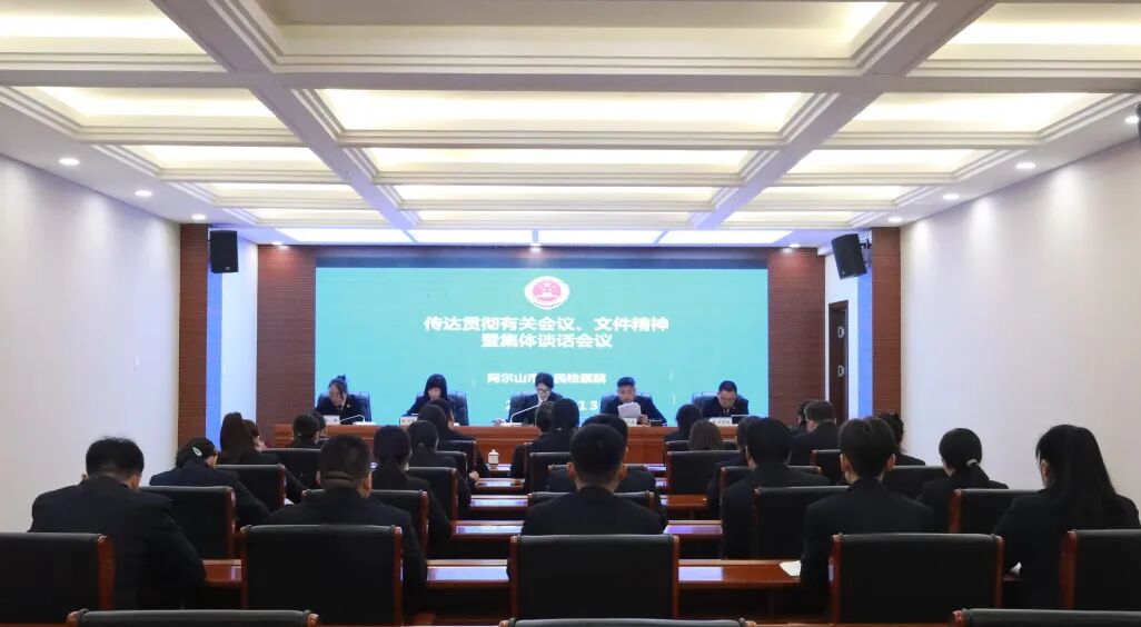 6月13日,阿尔山市检察院召开传达贯彻集中整治违规吃喝问题相关会议、文件精神暨集体谈话会议,传达学习《内蒙古自治区集中整治违规吃喝工作方案》《关于围绕违规吃喝开展明察暗访的通知》及市委学习教育工作专班《关于落实集中整治违规吃喝有关工作的工作提示》等文件精神,并通过与全体检察人员面对面座谈交流、谈心谈话,引导检察人员树立规矩意识,加强作风锤炼,始终做到知敬畏、存戒惧、守底线,激励大家坚定信心、担当作为、清廉有为,推动本院检察工作高质量发展。院党组书记、检察长迟文主持会议并讲话,党组成员及全体检察人员参会。