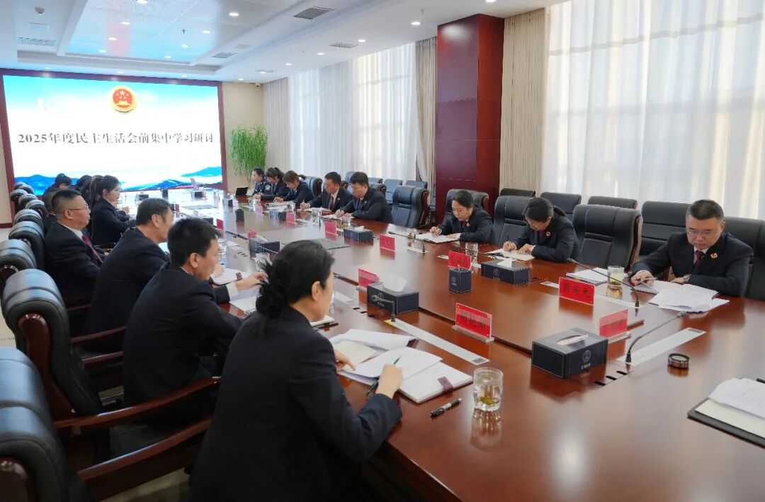 近日,乌兰浩特市检察院召开2025年度民主生活会前集中学习研讨,进一步统一思想、深化认识,为开好民主生活会筑牢思想根基。会议由乌兰浩特市检察院党组书记、检察长于朝华主持,班子成员、检委会专职委员、部门正副职、员额检察官参加会议。