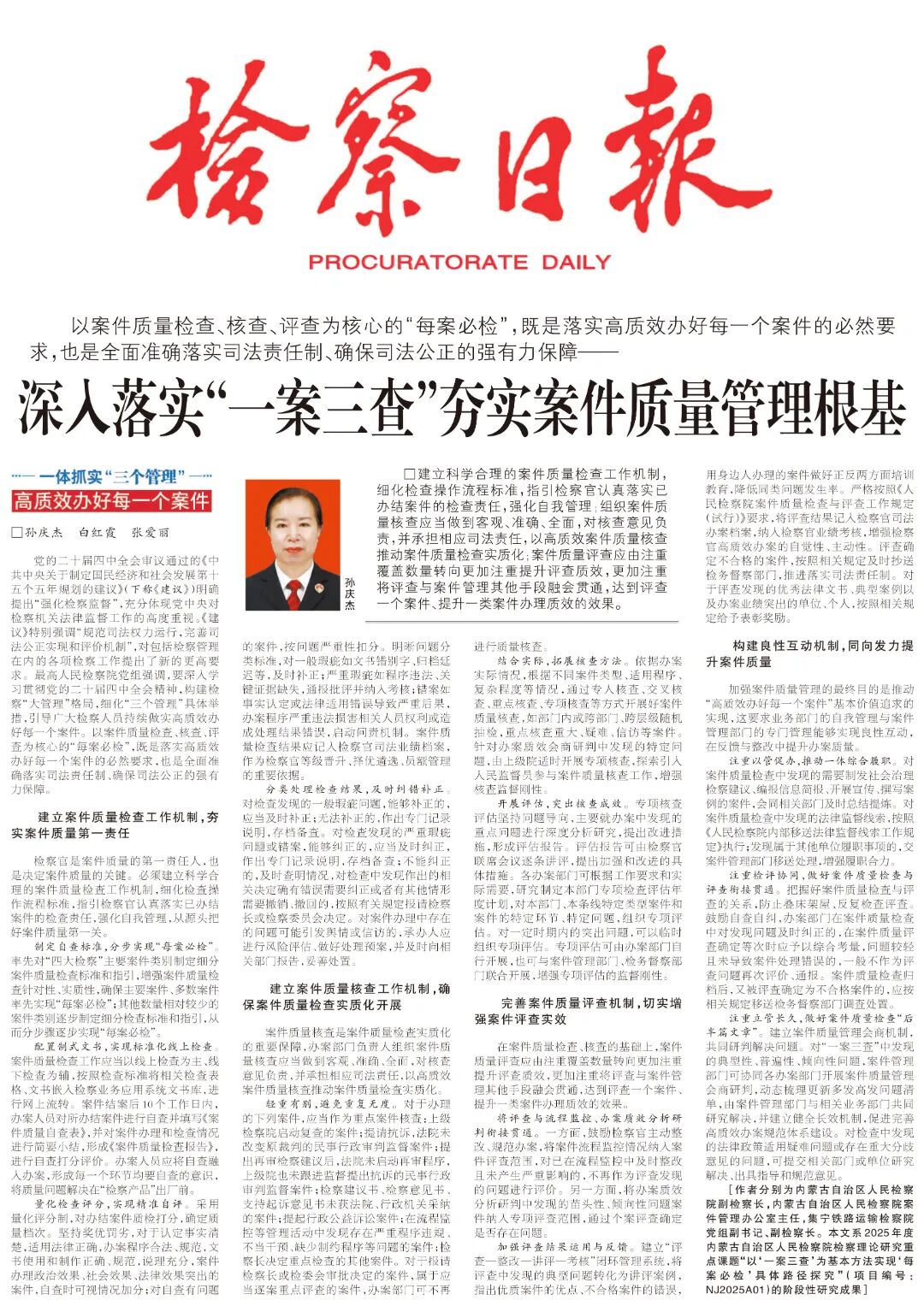 [本文系2025年度内蒙古自治区人民检察院检察理论研究重点课题“以‘一案三查’为基本方法实现‘每案必检’具体路径探究”(项目编号:NJ2025A01)的阶段性研究成果]