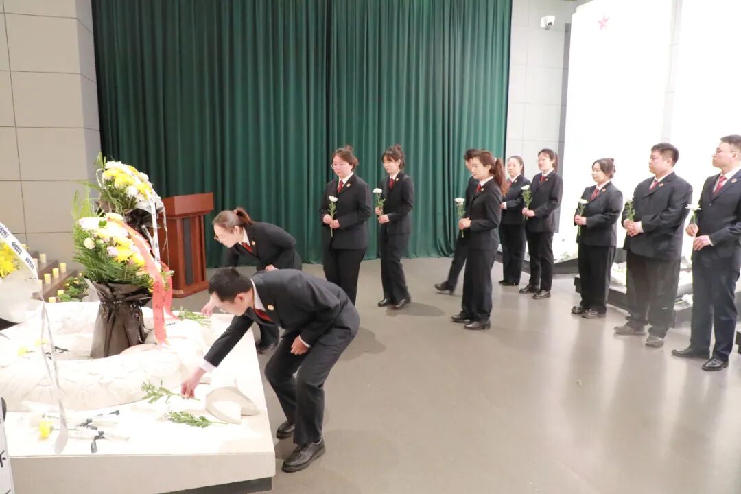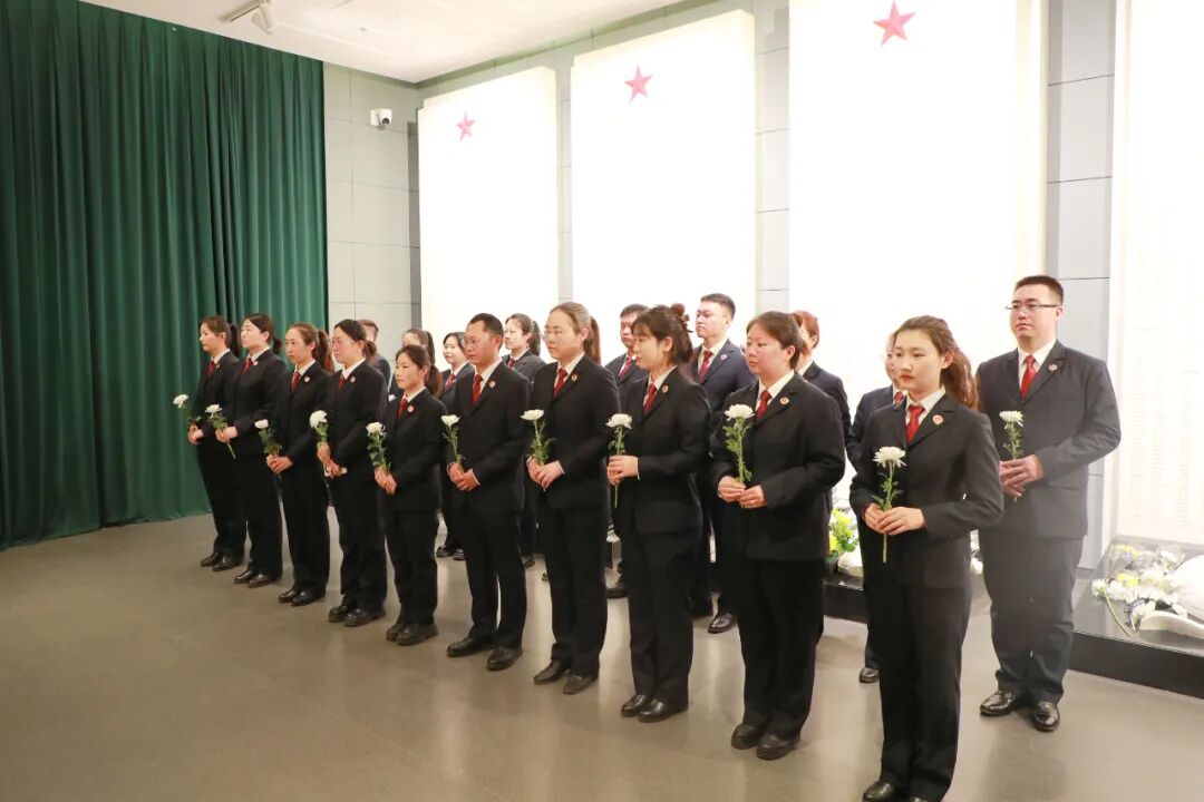 青山埋忠骨,清明寄哀思。为弘扬爱国主义精神,传承红色基因,赓续共产党人精神血脉,铸牢中华民族共同体意识,4月3日,兴安盟检察分院组织青年检察人员到内蒙古民族解放纪念馆开展“缅怀先烈志 奋进新征程”主题祭扫活动,以鲜花致敬英雄,铭记初心,砥砺前行。 检察人员身着制服,手持白菊,在庄严肃穆的内蒙古民族解放纪念馆英烈厅整齐列队,瞻仰铭刻烈士姓名的英烈墙,向纪念碑鞠躬默哀并敬献鲜花,深切悼念为民族解放、人民幸福英勇献身的革命先烈。