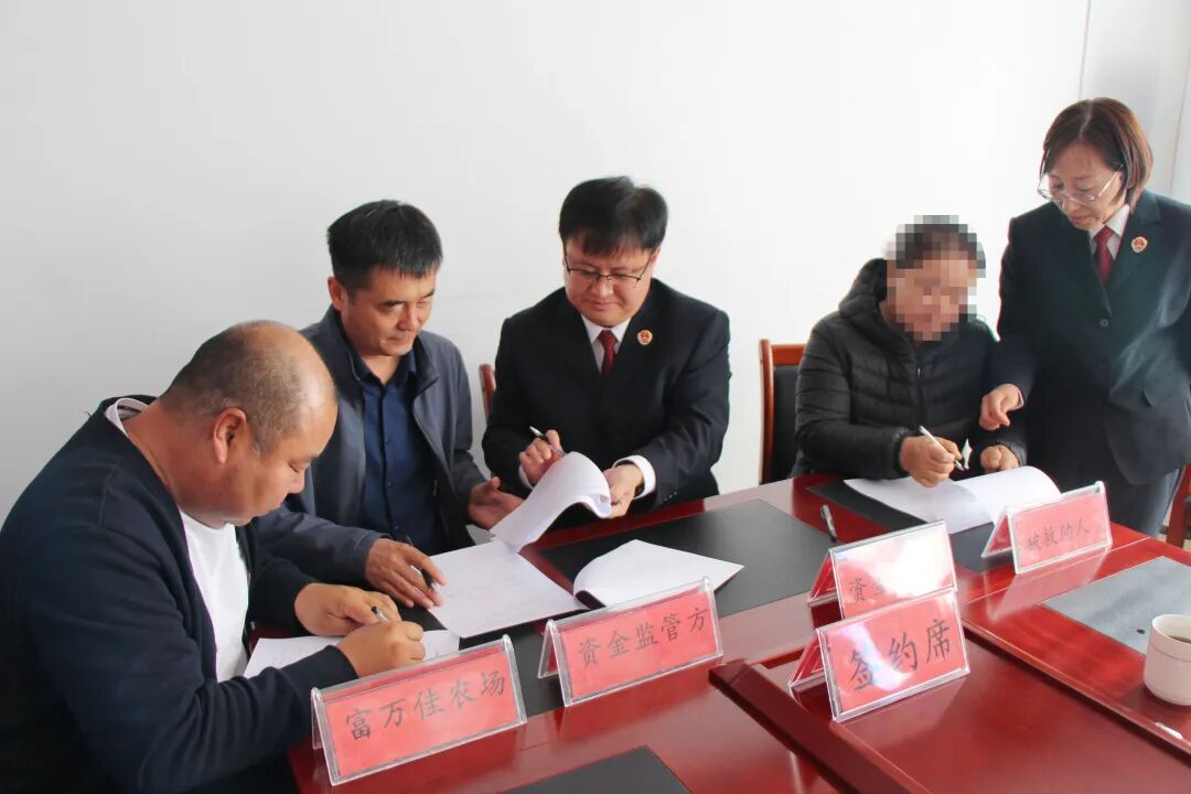 在随后召开的司法救助长效机制资金安全监督回访会上,检察机关与当地政府共同协商,并最终确定李广辉书记为两起案件4名被救助人做司法救助入股家庭农场做资金安全监管担保。李广辉表示:“谁都知道担保所承接的相关法律责任,但检察机关这么为我们镇群众办实事,我们非常感动,既救助因案件贫困的群众,又服务乡村振兴经济企业,真是一举两得,真是在办实事儿上见真章!我这个书记要带个好头。我要亲自担保,把检察院的长效机制救助资金监管好,把这份正能量传递下去!”最终,检察机关与巴彦高勒镇书记李广辉、富万佳家庭农场负责人朱庆军在现场重新签订了《司法救助金入股合作社协议书》,至此旧协议作废,由李广辉担任司法救助长效机制资金安全监管担保人的合同就此生效!一旁的香春看着大家为自己的事儿这样尽心,红了眼眶,流下了感动的泪水。